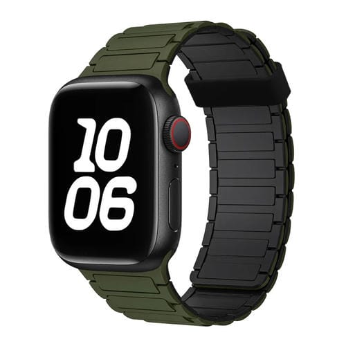 Correa de Silicona Apple Watch Series 3 42mm con Aro Magnético y Tres Cuentas (Verde Militar y Negro)