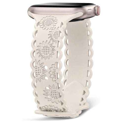 Correa de Silicona Apple Watch Series 8 45mm Estampado Girasoles y Encaje (Luz de Estrellas)