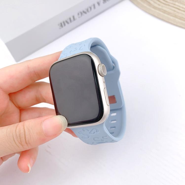 Correa de silicona con hebilla cóncava de leopardo para Apple Watch de 46 mm, 49 mm, 45 mm y 44 mm (azul claro)