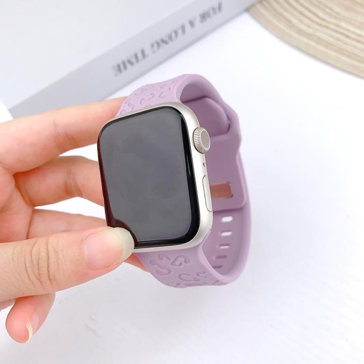 Correa de silicona con hebilla cóncava de leopardo para Apple Watch de 46 mm, 49 mm, 45 mm y 44 mm (morado claro)