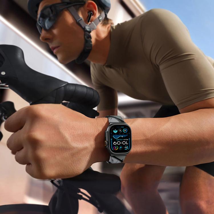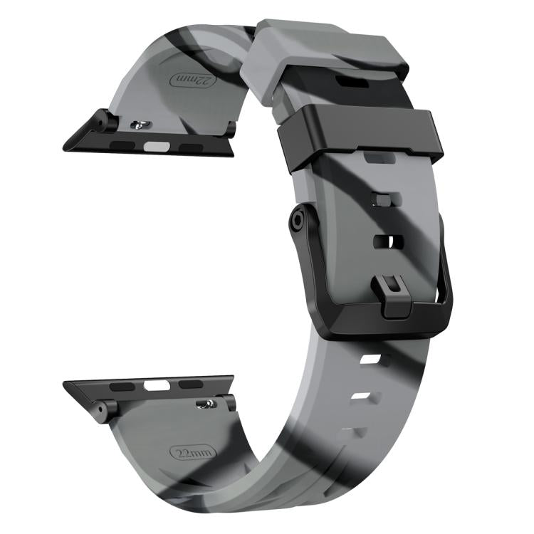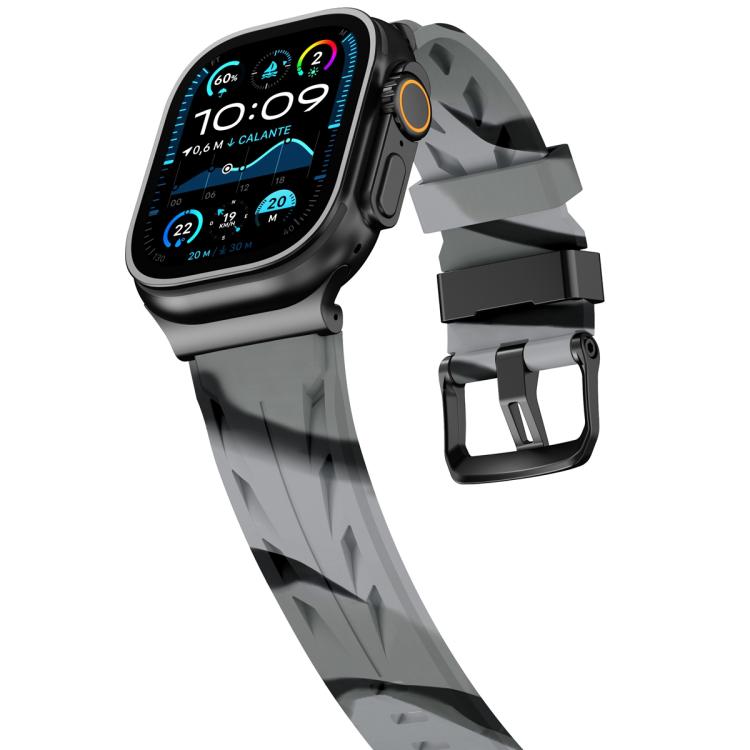 Correa de silicona con hebilla de pasador negra para Apple Watch de 46 mm / 49 mm / 45 mm / 44 mm (camuflaje negro y gris).