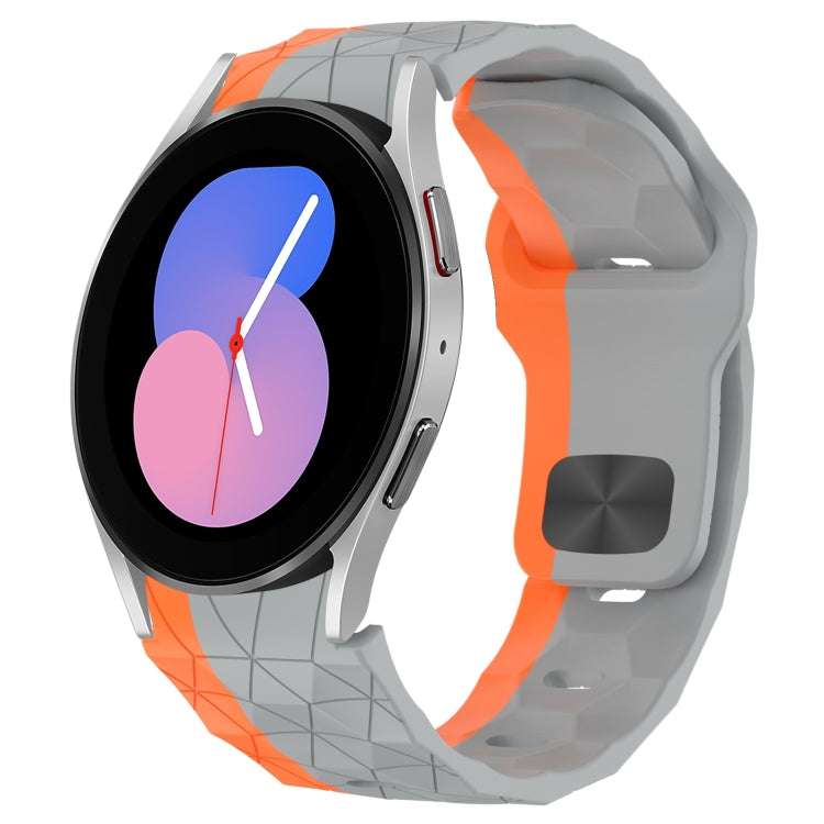 Correa de Silicona con Hebilla Inversa y Textura de Fútbol para Samsung Galaxy Watch 5 40mm (Gris y Naranja)