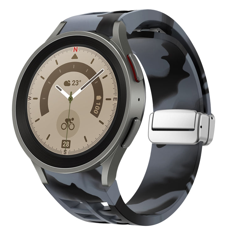 Correa de Silicona Richard para Samsung Galaxy Watch 5 Pro 45mm con Hebilla Plateada y Cierre Magnético (Camuflaje Negro y Gris)
