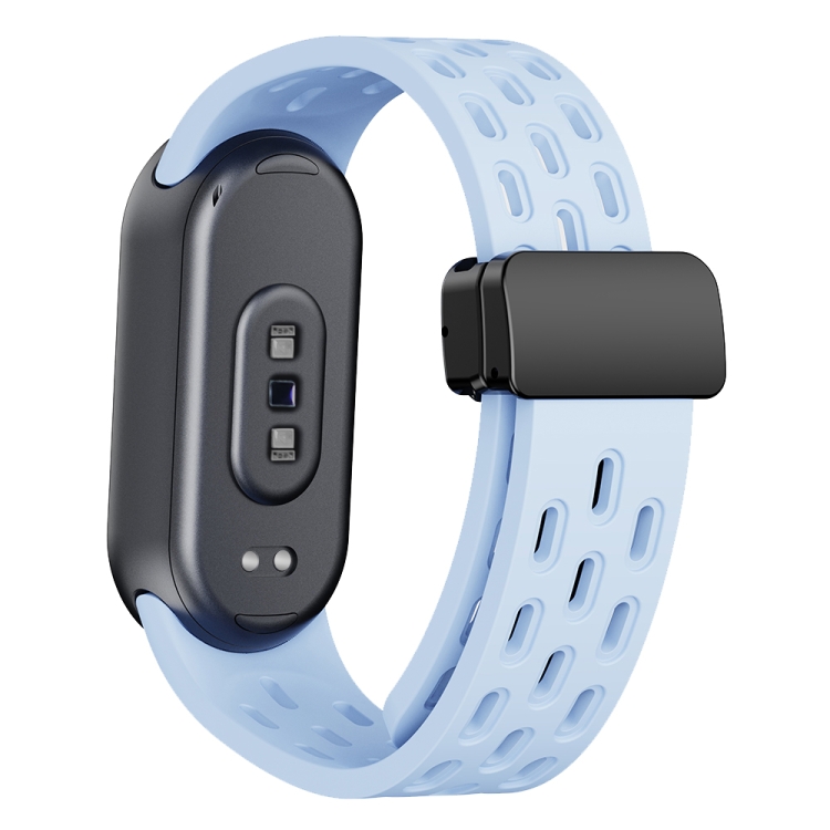Correa de silicona con hebilla plegable magnética para Xiaomi Smart Band 9 (azul claro)
