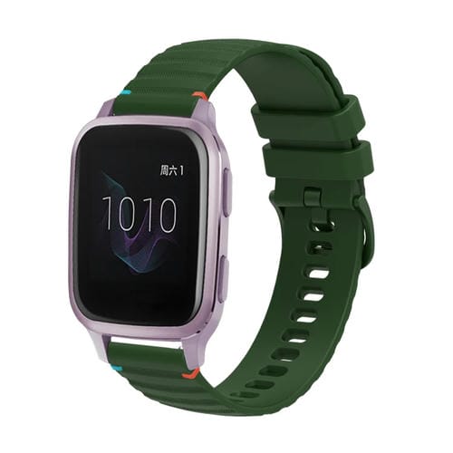 Correa de Silicona para Reloj Garmin Venu Sq 20mm con Puntadas Onduladas y Puntos (Verde Militar)