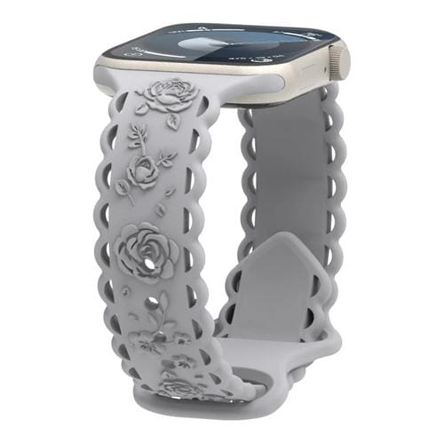 Correa de Silicona con Relieve de Rosa 3D para Apple Watch Series 9 45mm (Gris)