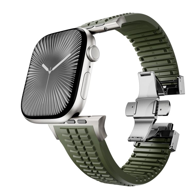 Correa de silicona con textura moleteada y hebilla plegable para Apple Watch de 46 mm, 49 mm, 45 mm y 44 mm (verde titanio)