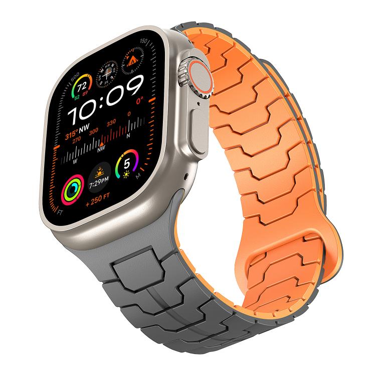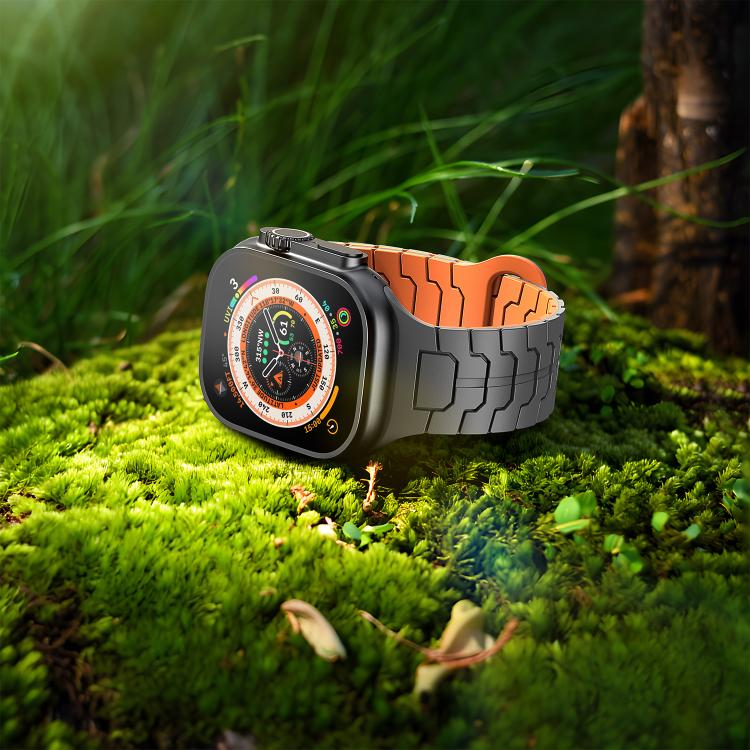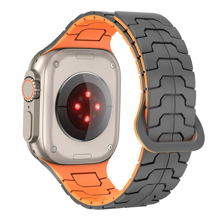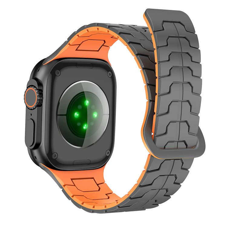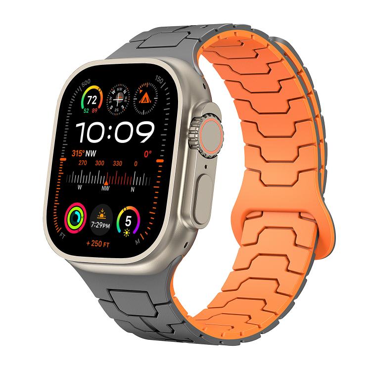 Correa de silicona magnética con diseño de escamas de dragón de acero para Apple Watch de 46 mm, 49 mm, 45 mm y 44 mm (gris grafito y naranja)