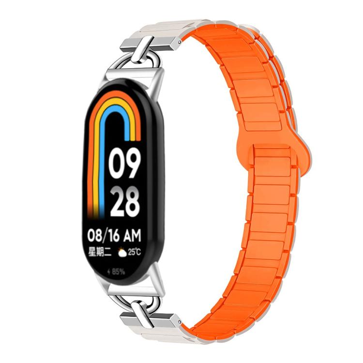 Correa de silicona magnética con tres cuentas en forma de D para Xiaomi Smart Band 10/9/8 (naranja estrella)