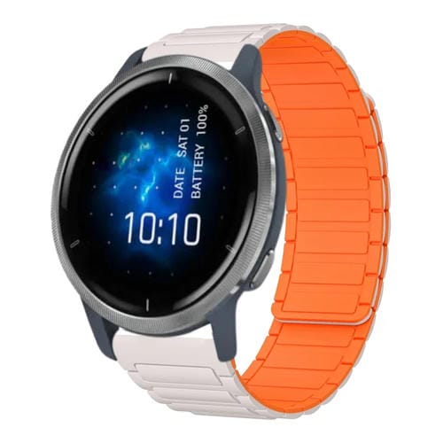 Correa de Silicona Magnética en Forma de I para Reloj Garmin Venu 2 22mm (Luz de Estrellas y Naranja)