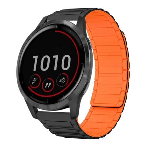 Correa de Silicona Magnética en Forma de I para Reloj Garmin Vivoactive 4 22mm (Negra y Naranja)