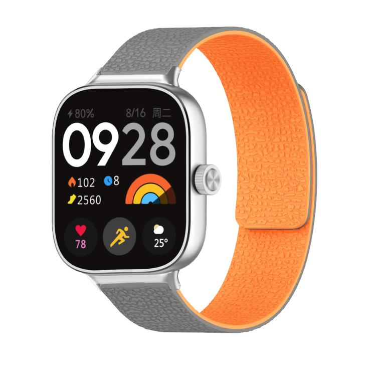 Correa de silicona magnética suave con textura de lichi para Xiaomi Smart Band 9 Pro y Redmi Watch 5 (gris y naranja)