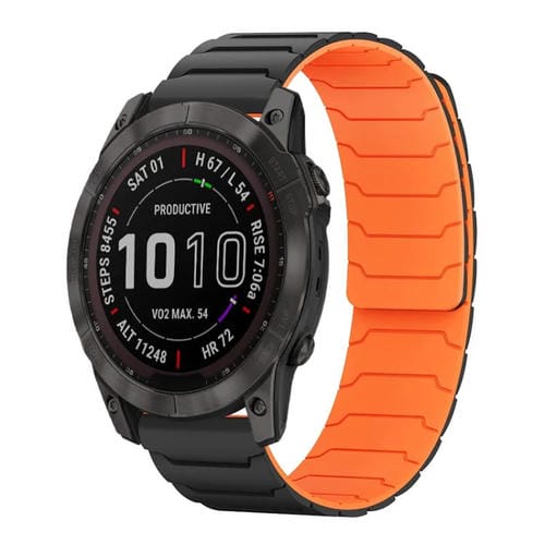 Correa de silicona magnética xDfind de 26 mm para Garmin Fenix 8/7X/6X/5X (negro y naranja)