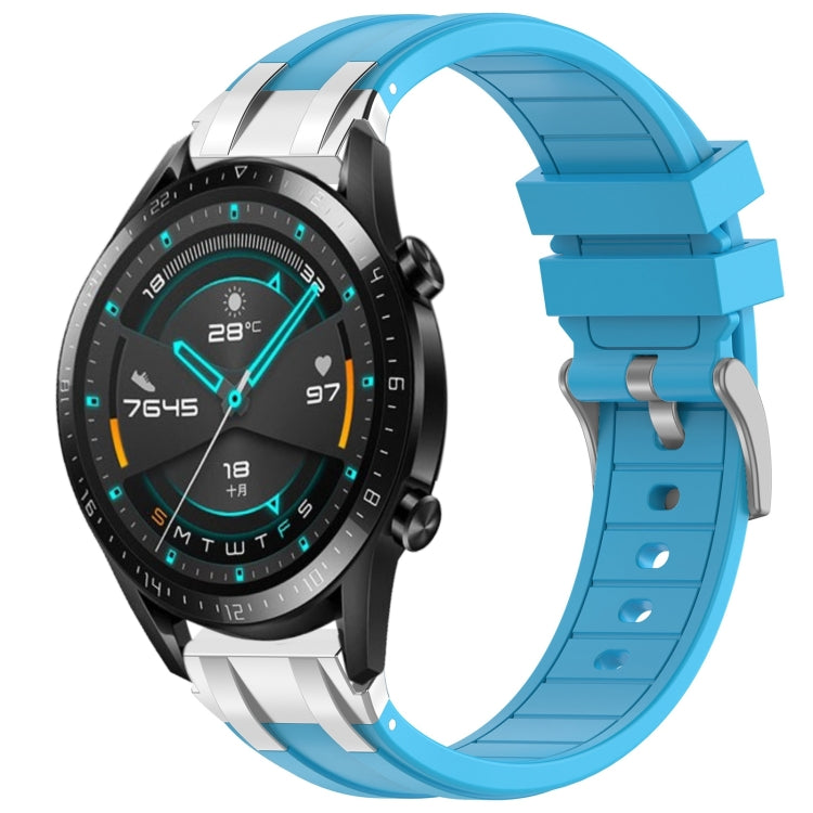 For Huawei Watch GT2 46mm 22mm Silicone Watch Band Strap with Quick Release Silver Buckle (Sky Blue)