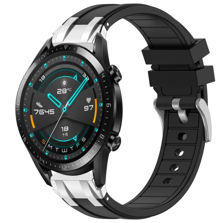 For Huawei Watch GT2 46mm 22mm Silicone Watch Band Strap with Quick Release Silver Buckle (Black)