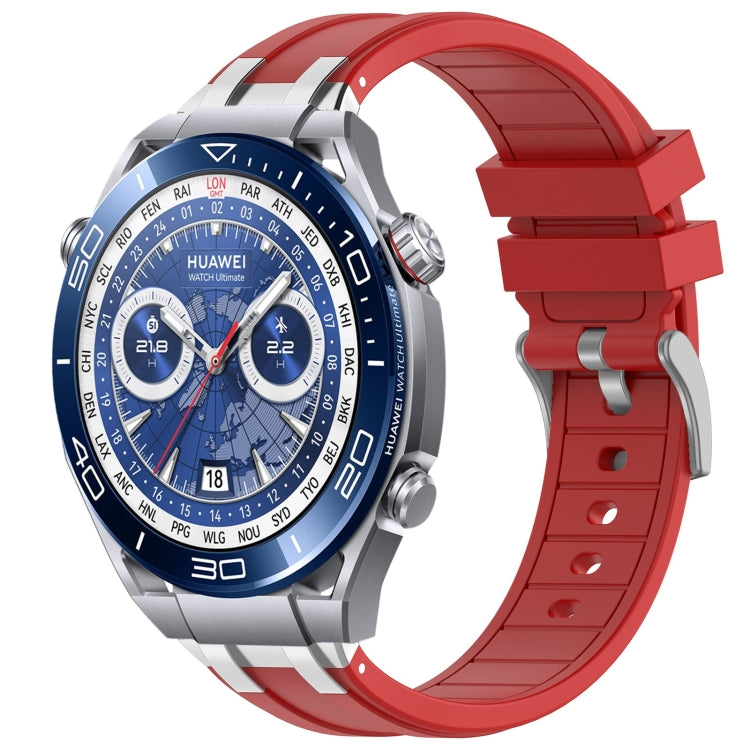 Huawei Watch Ultimate 22mm Silicone Watch Band Strap with Quick Release Silver Buckle (Red)