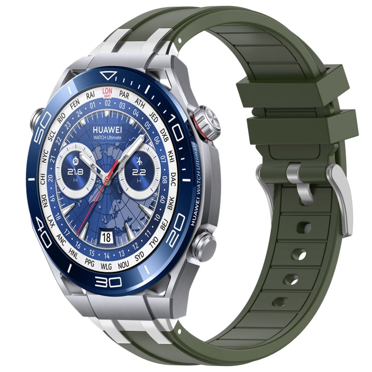 Huawei Watch Ultimate 22mm Silicone Watch Band Strap with Quick Release Silver Buckle (Olive Green)