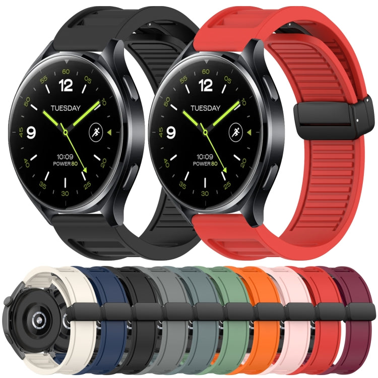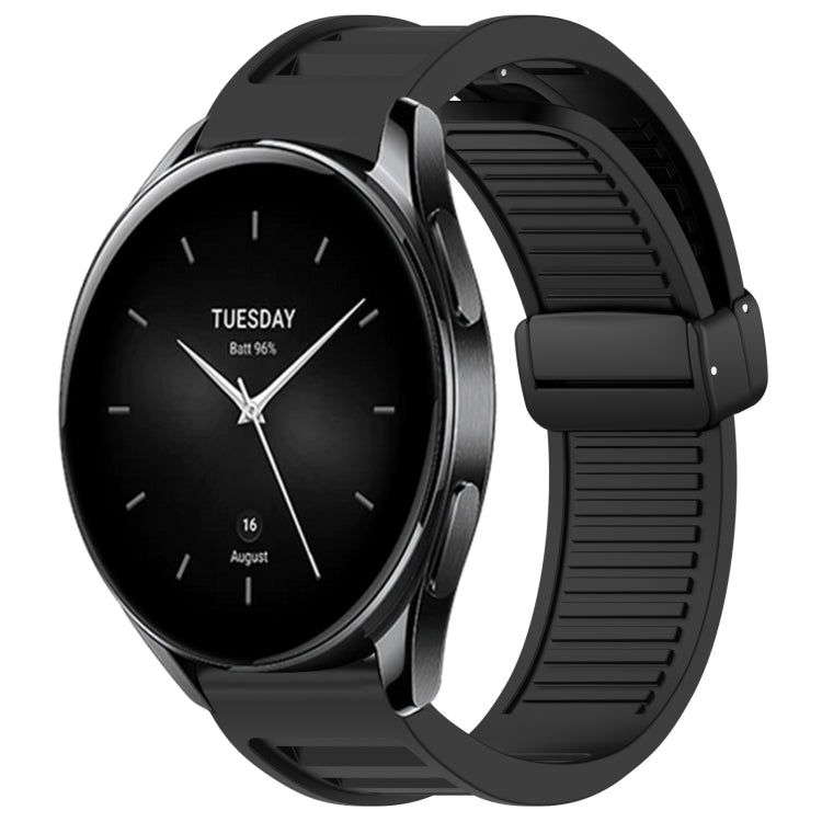 Correa de silicona para reloj Xiaomi Watch S2 con hebilla magnética y ventana ciega de 22 mm (negra)