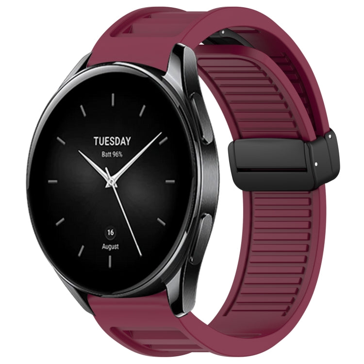 Correa de silicona para reloj Xiaomi Watch S2 con hebilla magnética y ventana ciega de 22 mm (rojo vino)