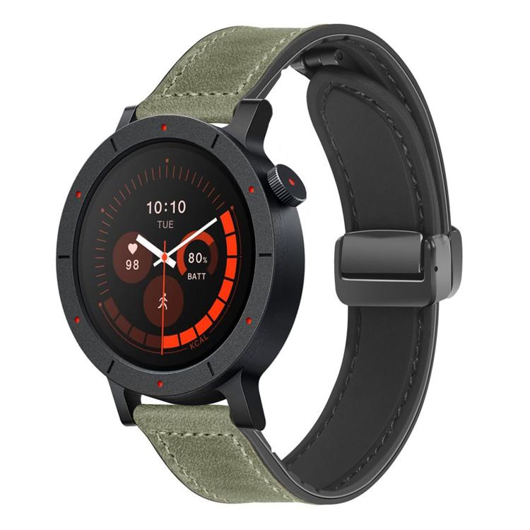 Correa de silicona y cuero con hebilla magnética plegable para CMF Watch 3 Pro (estampado de caballo loco, verde militar)