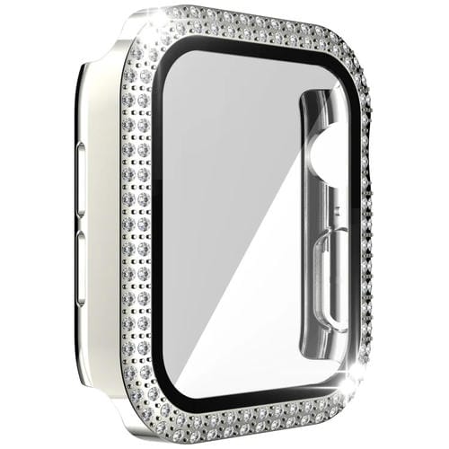 Funda de Reloj + Protector de Vidrio Templado Diamante para Apple Watch Series 6, SE, 5, 4 44mm (Plata)