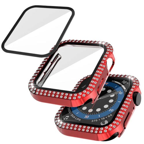Funda de Reloj + Protector de Vidrio Templado Diamante Diamond PC para Apple Watch Series 6, SE, 5, 4 44mm (Rojo)
