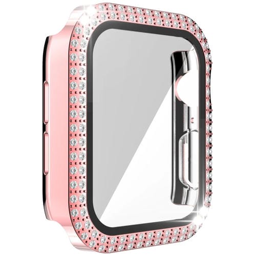 Funda de Reloj + Protector de Vidrio Templado Diamante para Apple Watch Serie 3 2 1 38mm (Rosa)