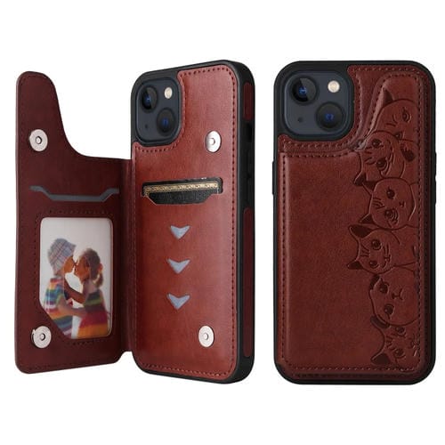 Estuche a Prueba de Golpes con Patrón de Seis Gatos para iPhone 13 Mini (Brown)