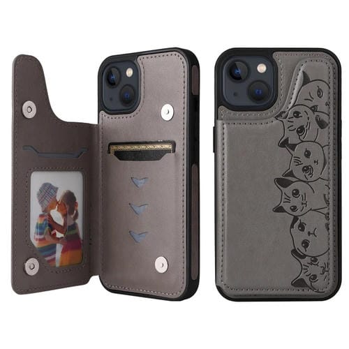 Estuche a Prueba de Golpes Patrón de Estampado Seis Gatos para iPhone 13 Mini (Gris)