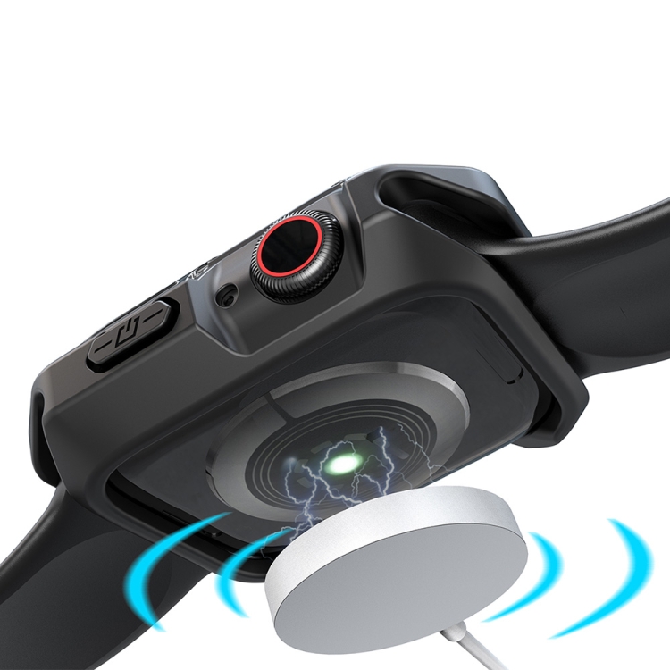 Estuche Armadura Transparente Dos Colores para Apple Watch Series 8/7 45mm (Negro Transparente)