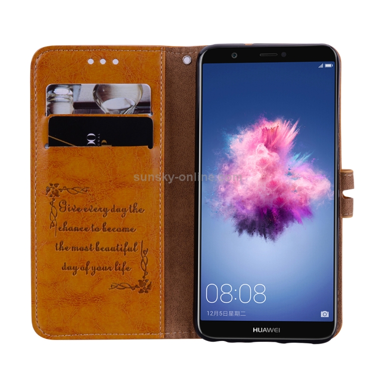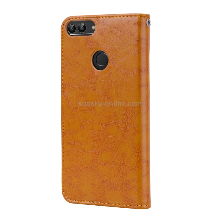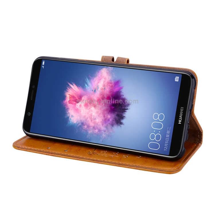 Estuche de Cuero con Tapa Horizontal para Huawei P Smart / Enjoy 7S con Soporte y Ranuras para Tarjetas (Marrón)