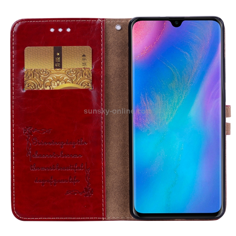 Estuche de Cuero con Tapa Horizontal para Huawei P30 Pro con Soporte y Ranuras (Rojo)