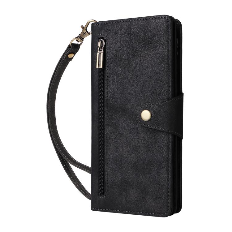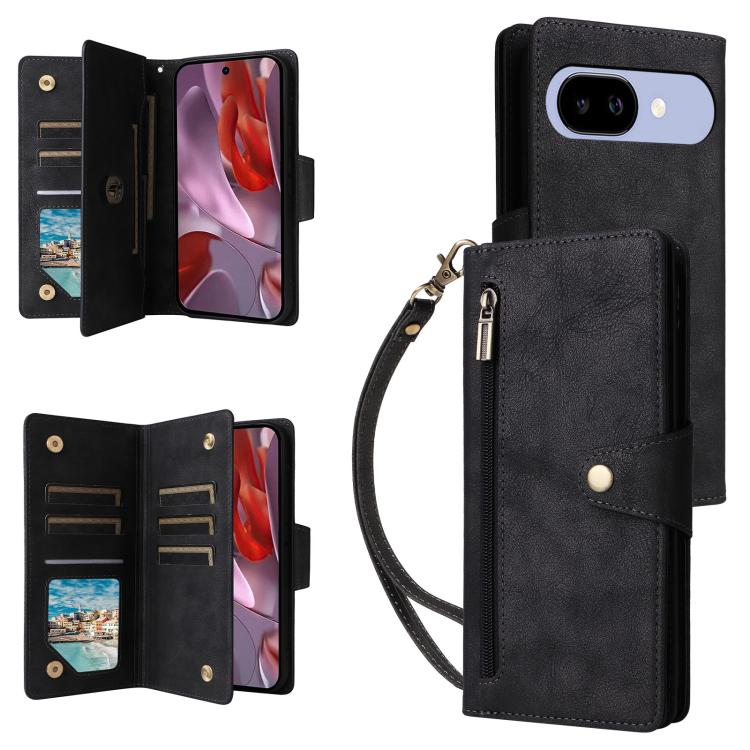 Estuche de Cuero con Tres Pliegues y Hebilla de Remache para Google Pixel 9A (Negro)
