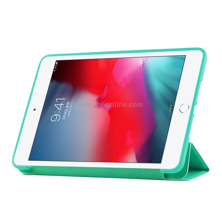 Estuche inferior de plástico PU para iPad Mini 2019 con tapa izquierda y derecha, soporte triple y función Smart Sleep