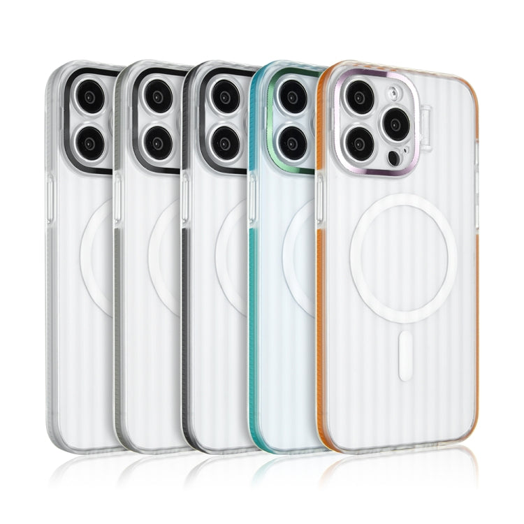 Estuche Magnético para Teléfono Magsafe con Soporte para Lente de Borde de Color para iPhone 14 Pro (Gris)