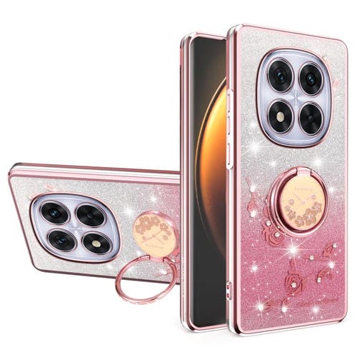 Estuche para Teléfono con Anillo de Flores Inmortal con Purpurina Degradada para Xiaomi Redmi Note 14 Pro 5G, Todo Incluido (Rosa)