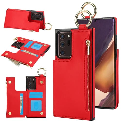 Estuche para Teléfono Samsung Galaxy Note20 Ultra Rfld con Cremallera y Anillo de Doble Hebilla Antirrobo (Rojo)