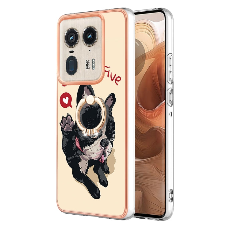 Estuche para Motorola Edge 50 Ultra con Galvanoplastia IMD Doble Cara y Soporte para Anillo (Perro de la Suerte)