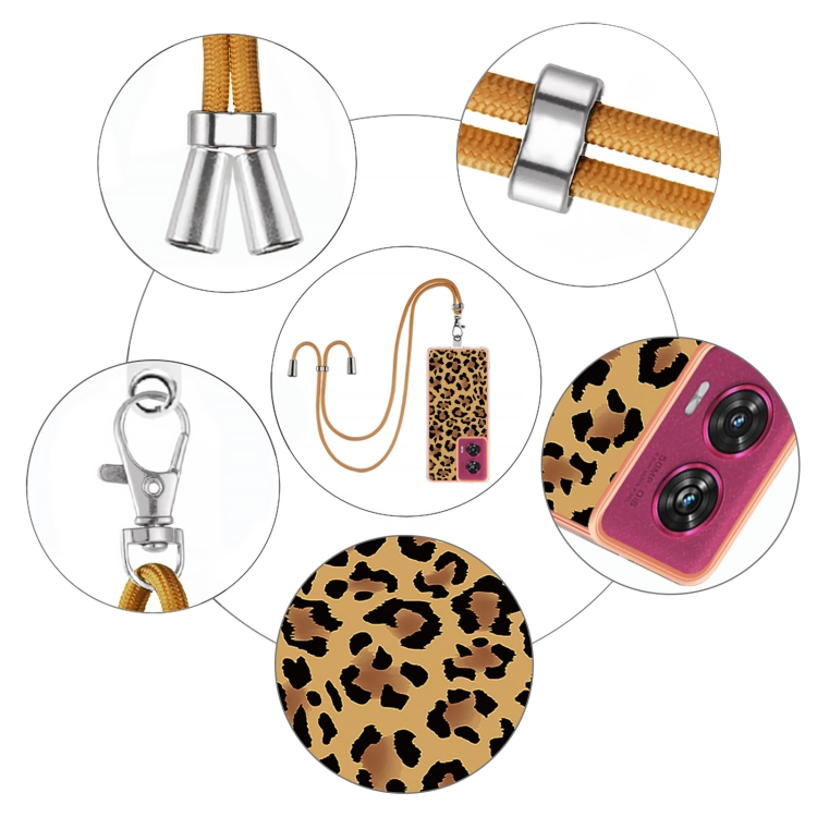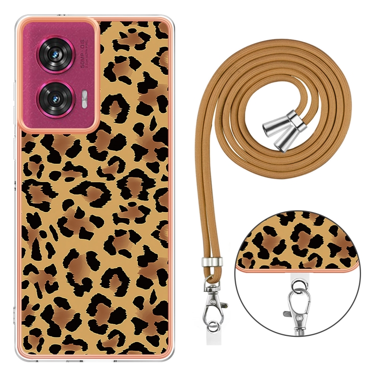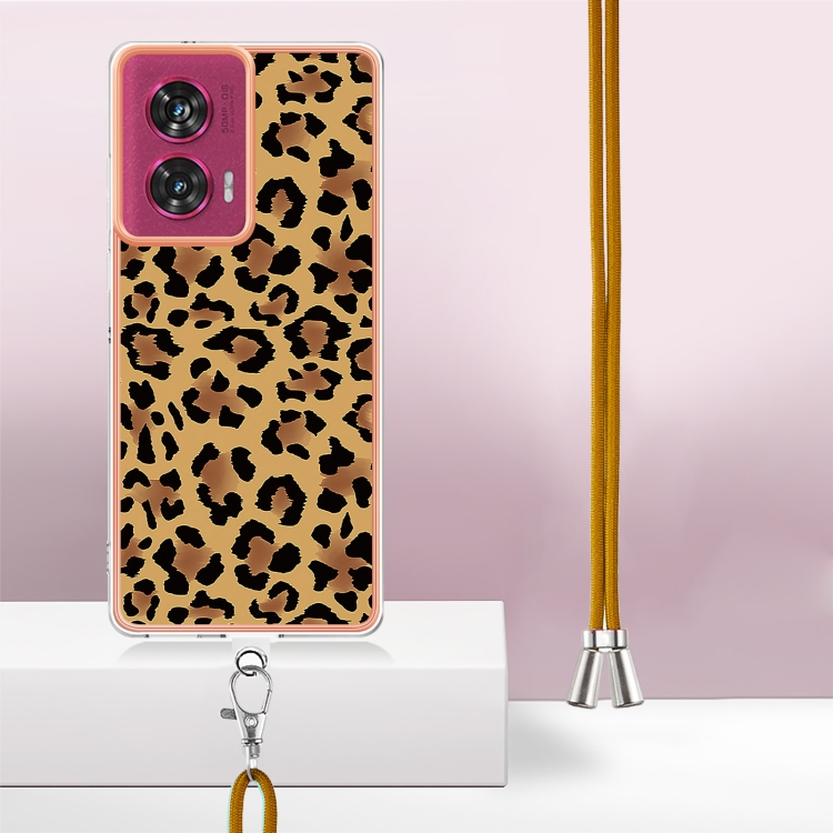 Estuche para Teléfono Motorola Edge 50 Fusion con Imd Doble Cara, Galvanoplastia y Cordón (Leopardo)
