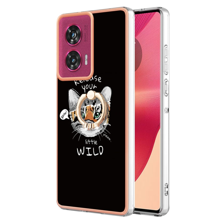 Estuche para Motorola Edge 50 Fusion con IMD de Doble Cara, Galvanoplastia y Soporte para Anillo (Crecimiento Natural)