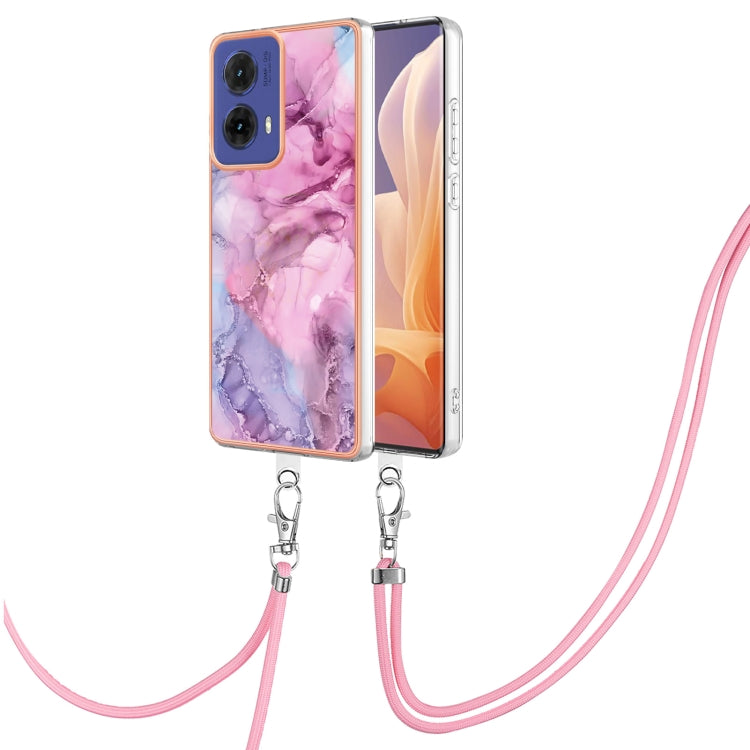 Estuche para Motorola Moto G85 con Imd Doble Cara y Revestimiento Mármol Galvanizado con Cordón (Rosa)