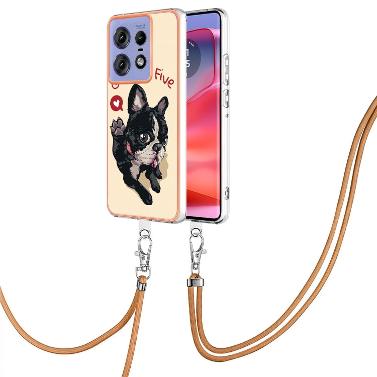 Estuche para Teléfono Motorola Edge 50 Pro con IMD Doble Cara Galvanizada y Cordón (Perro de la Suerte)