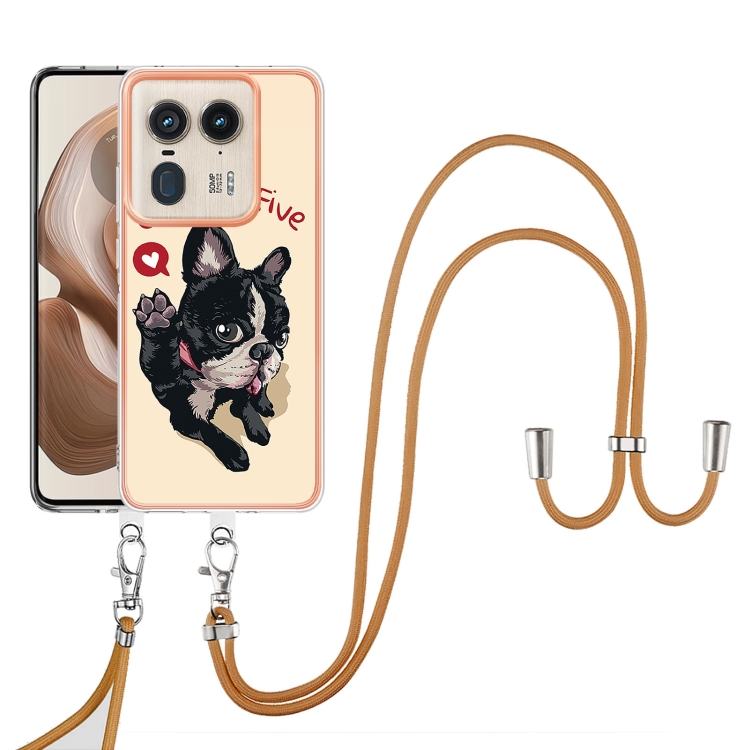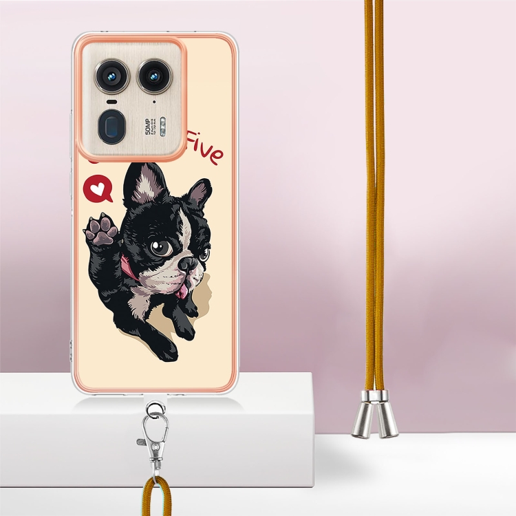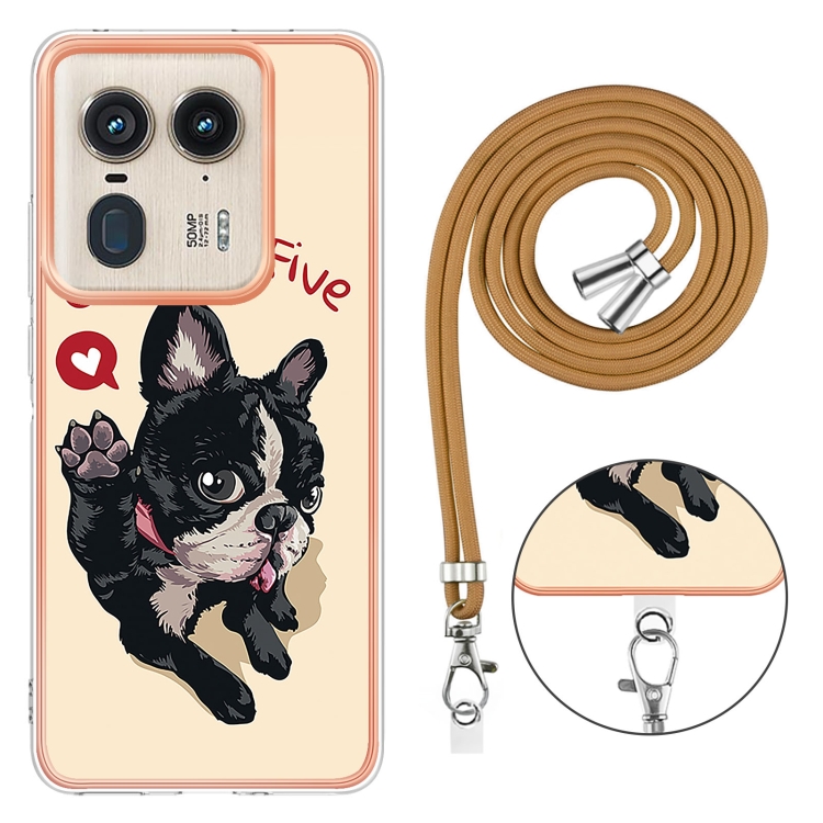Estuche para Teléfono Motorola Edge 50 Ultra con IMD Doble Cara Galvanizada y Cordón (Perro de la Suerte)