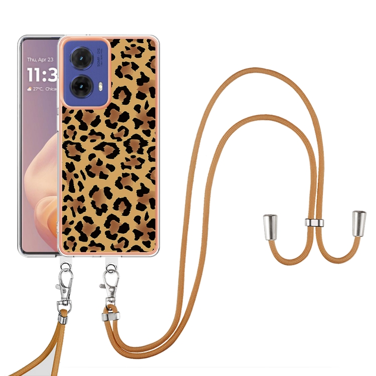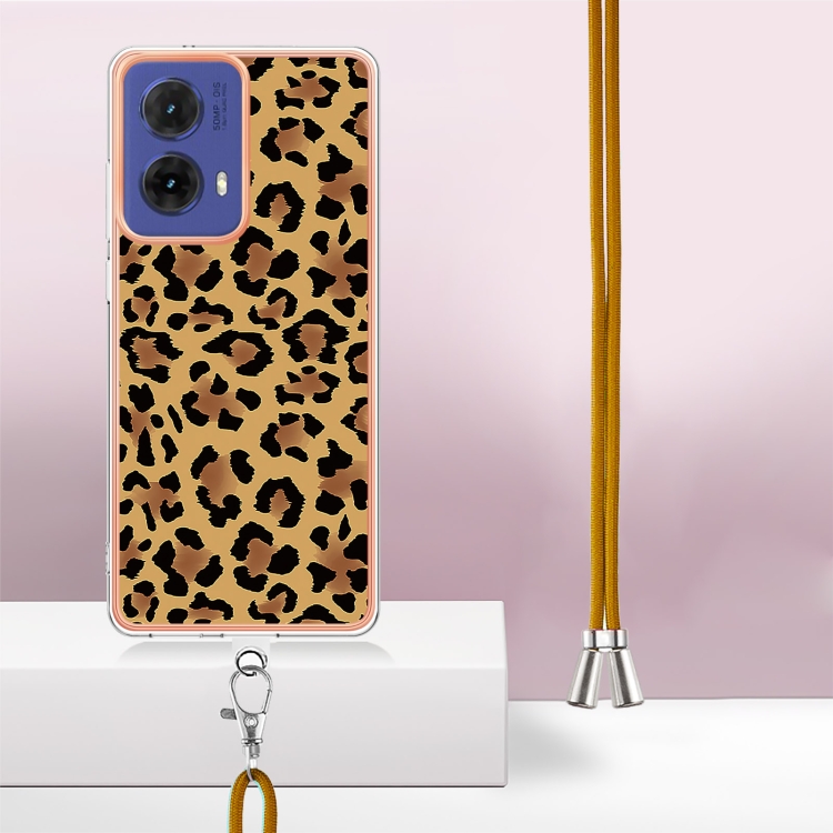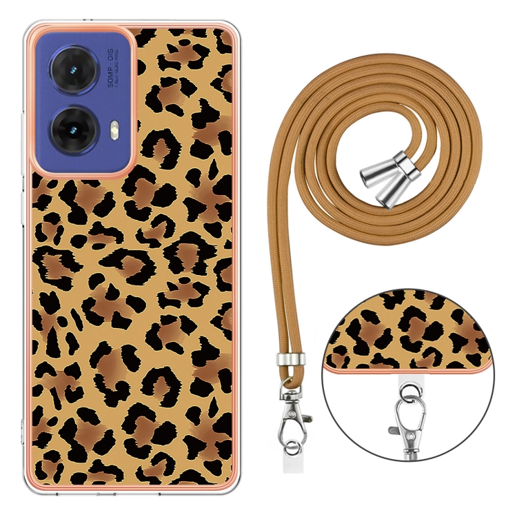 Estuche para Teléfono Motorola Moto G85 con IMD Doble Cara Galvanizada y Cordón (Leopardo)