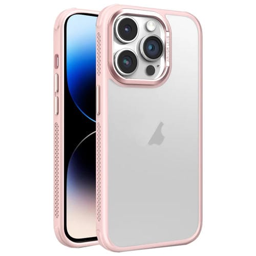 Estuche para Teléfono iPhone 14 Pro Max Marco de Lente Metal Esmerilado Sensación de Piel Enfriamiento Lateral (Rosa)
