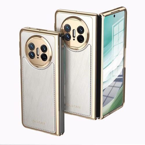 Estuche para Teléfono Huawei Mate X5 con Revestimiento Brocado Plateado y Alambre Dorado Integrado (Blanco)