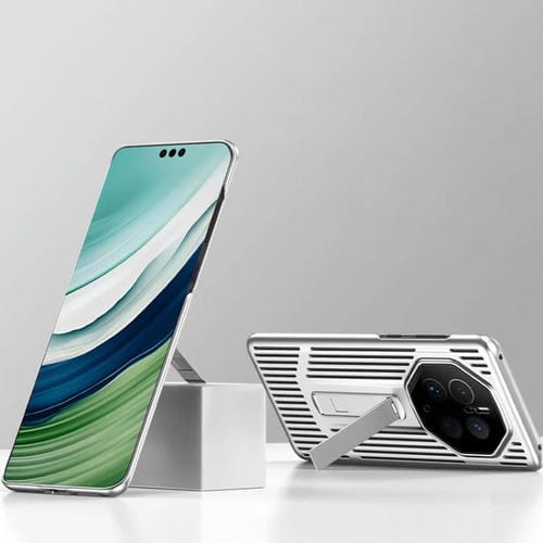 • 1x Estuche para Teléfono Huawei Mate 50 Pro con Soporte de Refrigeración (Blanco Plateado)