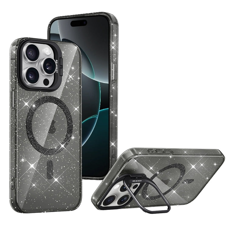 Estuche para Teléfono con Soporte para Lentes Magsafe y Protector Brillante para iPhone 16 Pro Max (Negro)