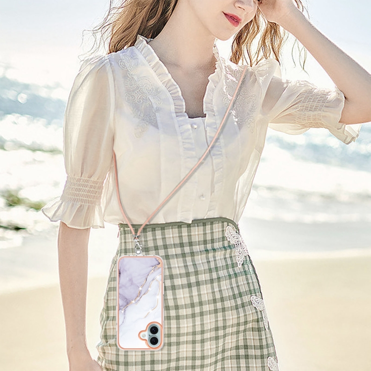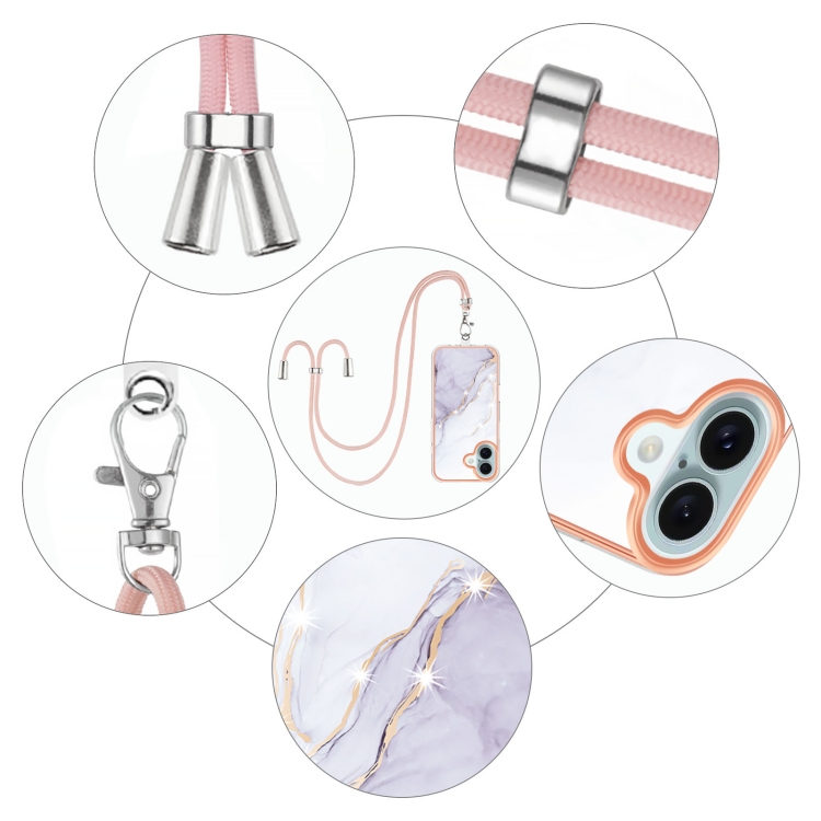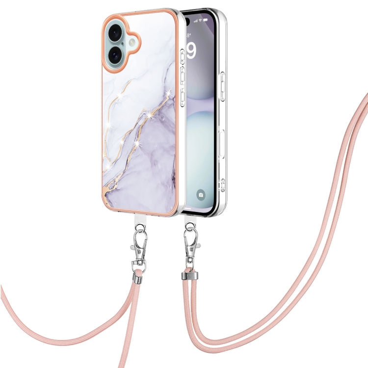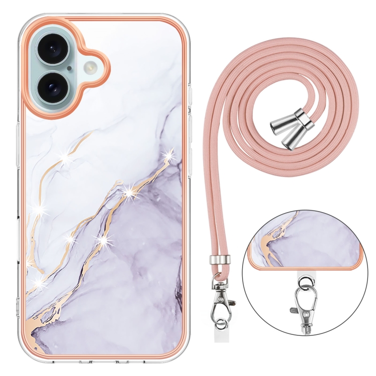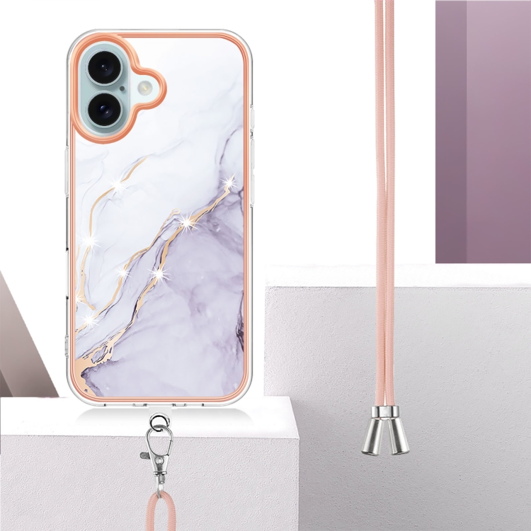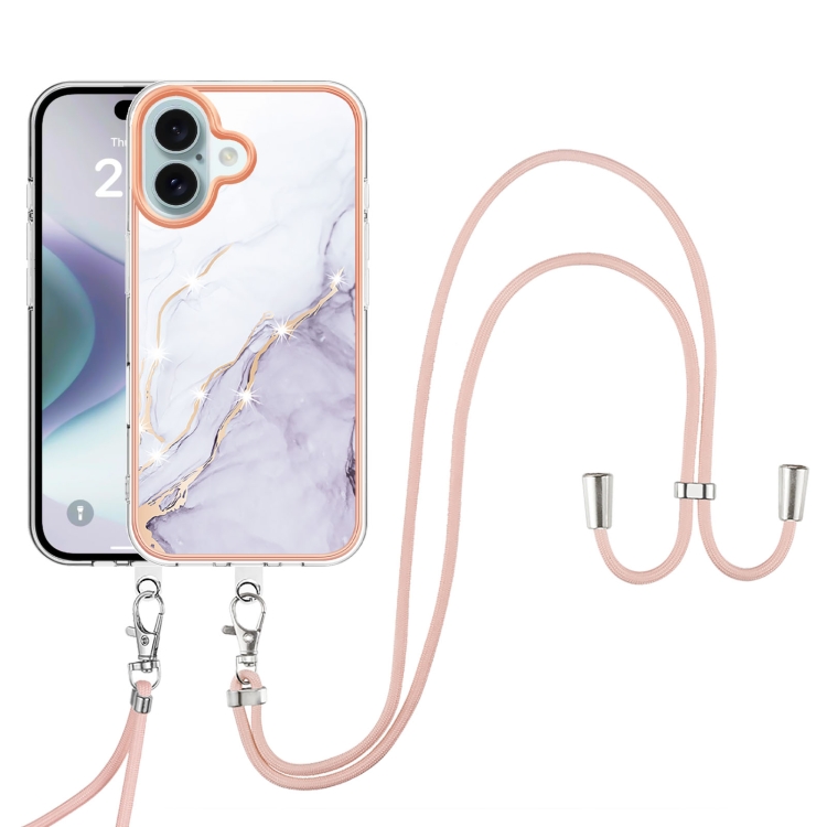 Estuche para Teléfono Imd Doble Cara Mármol Galvanizado iPhone 16 con Cordón (Blanco)