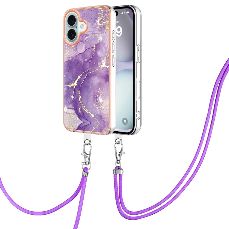 Estuche para Teléfono Imd Doble Cara con Revestimiento Mármol Galvanizado para iPhone 16 con Cordón (Púrpura)